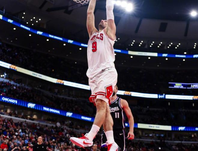 和国王队在场上各自为战形成鲜明对比的是公牛整场都在围绕吉迪展开战术,后者也延续了开赛后的火热状态,得分和组织一肩挑,打出了20分、8个篮板和12次助攻的准三双数据,率领球队打出了流畅的攻防表现。